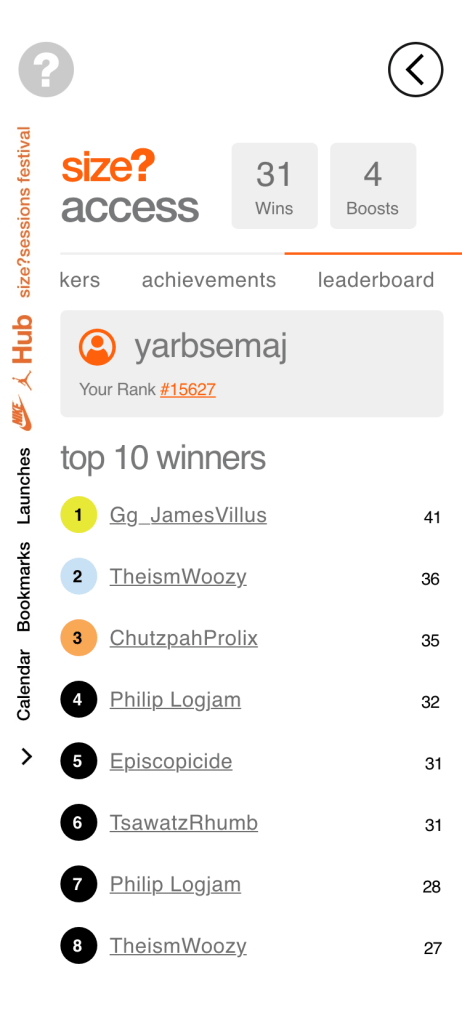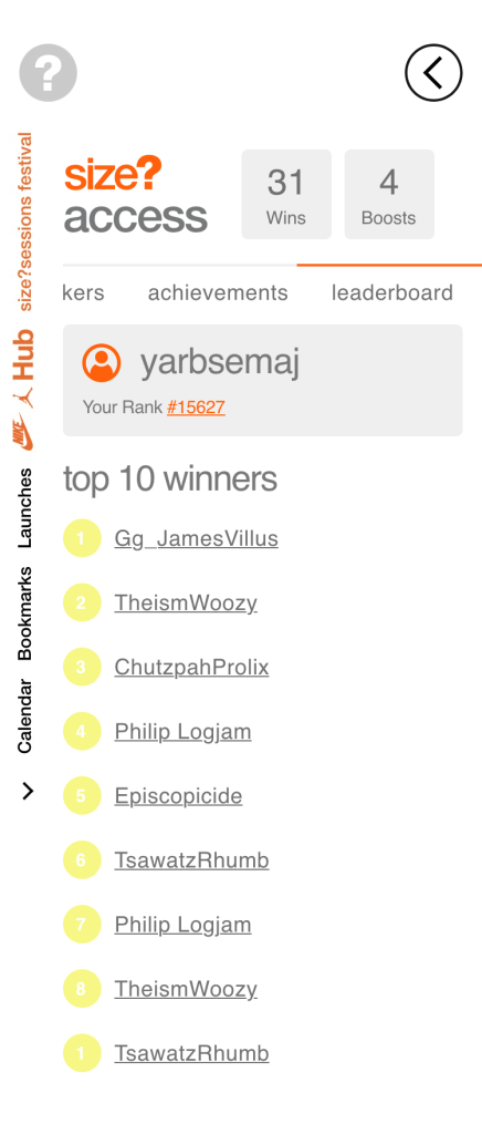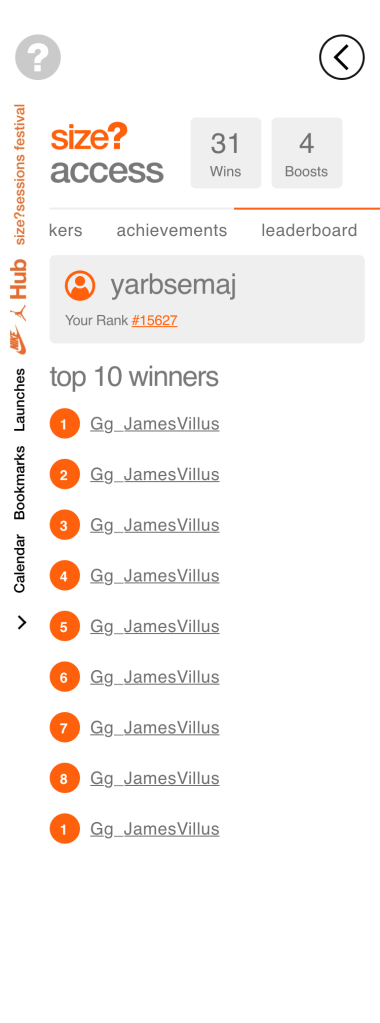 size? wanted to explore gamification on their Launches app for users of the app and members of size?access. To do this the content team created a series accomplishments and tiers of success for sneaker collectors to strive for.